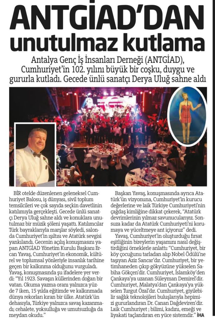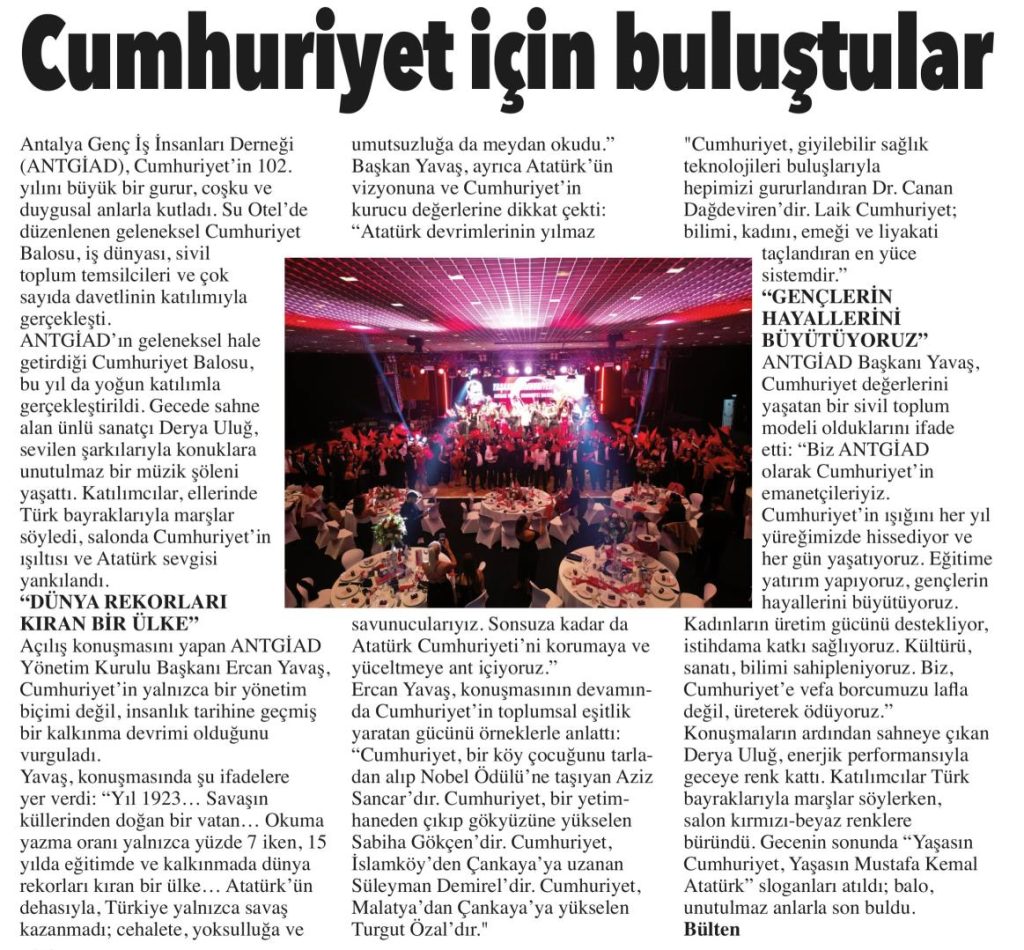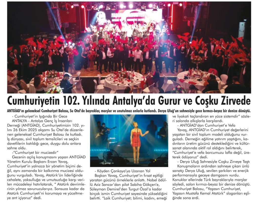 Antalya Genç İş İnsanları Derneği (ANTGİAD), Cumhuriyetimizin 102. yılını büyük bir coşku, duygu ve gururla kutladı.