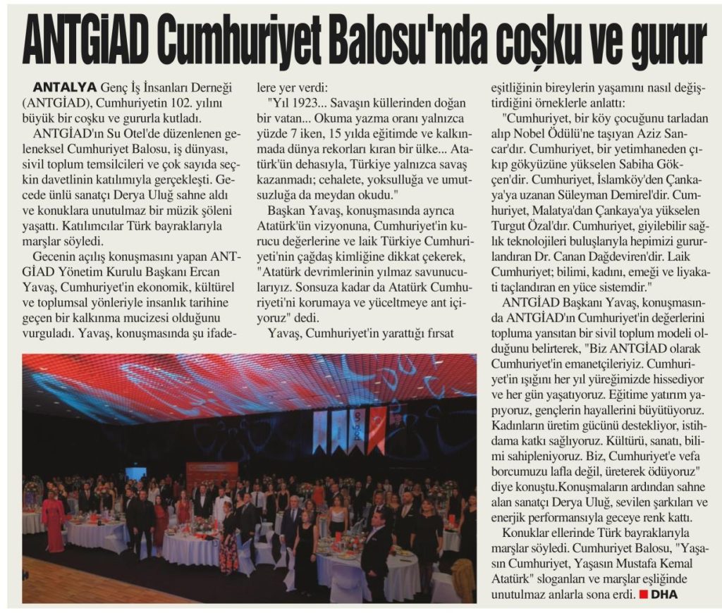 ANTGİAD CUMHURİYET BALOSUNDA COŞKU VE GURUR BİR ARADAYDI